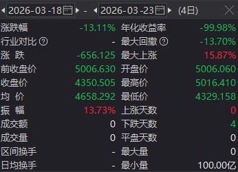 在最近4个交易日内,现货黄金累计跌幅超过13%。
